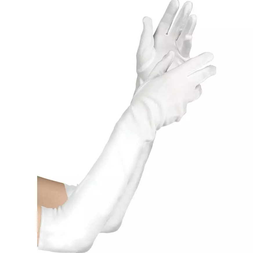 Add elegance to your costume with these Deluxe Long White Gloves! These stylish long white gloves are elbow length at 22in and feature a comfortable stretch design that fits most standard women’s sizes. Gloves are 100% nylon.