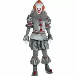 We all float down here! Give trick-or-treaters a genuine scare this year dressed up in a Tattered Pennywise Costume! The costume includes a gray jumpsuit, collar, and boot covers designed to look like Pennywise’s signature creepy clown suit. Accessorize the costume with the included mask.