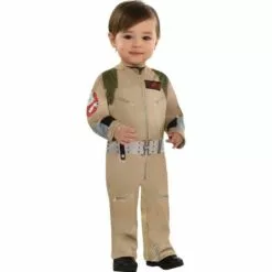 Your little one looks ready for paranormal activity in the Ghostbusters Costume for babies. This cozy knit onesie features a convenient hook-and-loop closure on the back and snaps on the legs for quick changes. The costume details are all printed directly on the costume for safety: “Venkman” name tag, Ghostbusters logo, elbow pads, and even backpack straps and a printed backpack.
