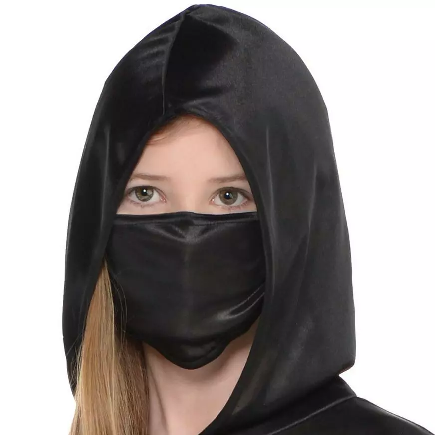 More on Girls Dragon Ninja Costume: Slay, girl! This ninja costume for girls features a hooded tunic and matching black leggings that allow you to sneak through the darkness of night. The long-sleeve tunic features a gold dragon on the front and red straps attached to the arms. Matching red straps are attached to the leggings, too. Tie on the red belt tie and conceal your identity with the black face mask. Shoes and weapons not included.